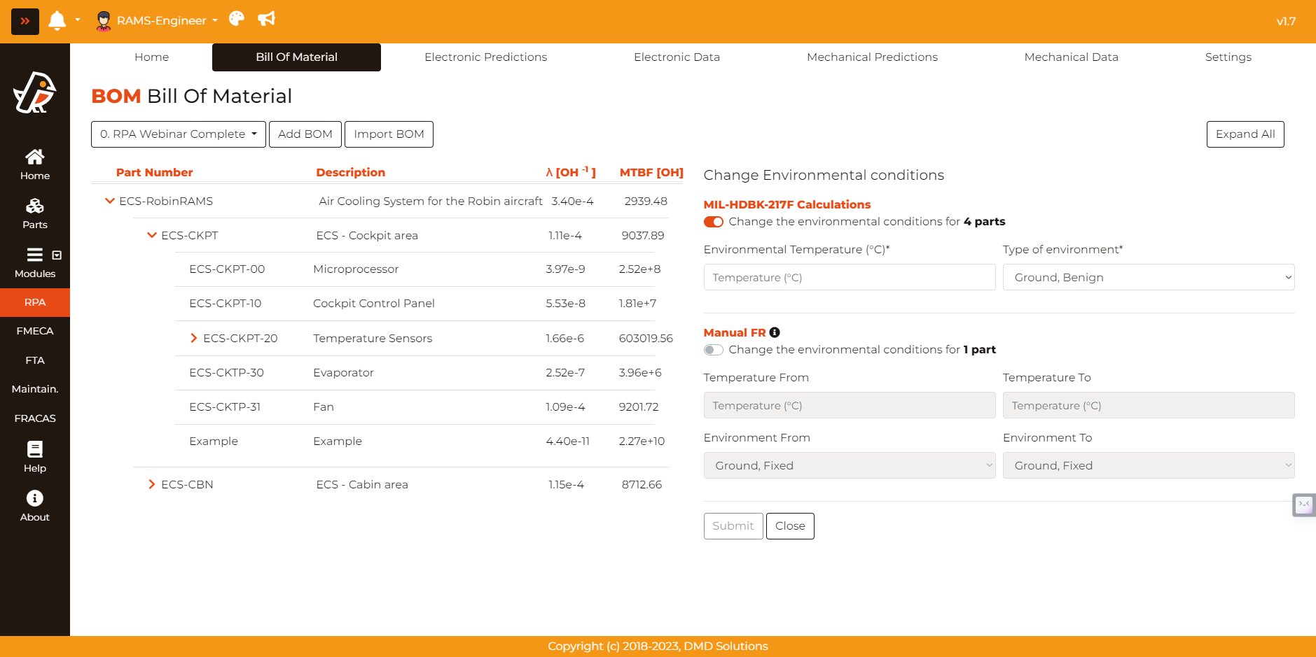 After computing the failure rate in the corresponding page, Robin gives the option to go back to the BOM. Note that, if the node has children, the computation is performed based on the failure rates of the children (see the RPA | Reliability Prediction Analysis section for computation details).